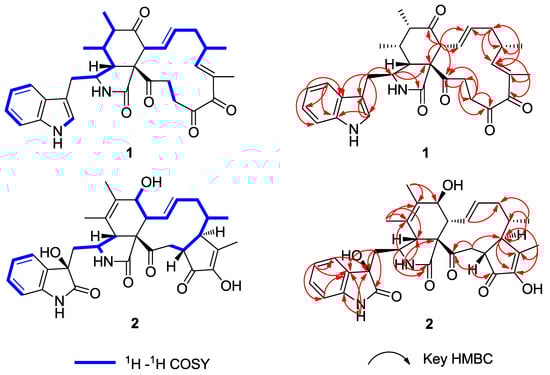 1H-1H COSY, Key HMBC of Compounds 1–2.