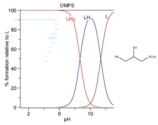 - Avdeef, A.; Chemotti, A.R. Cadmium binding by biological ligands. Part 4. Polynuclear complexes of cadmium with 2,3-dimercaptopropane-1-sulphonic acid. J. Chem. Soc. Dalt. Trans. 1991, 5, 1189–1194. [Google Scholar] [CrossRef]