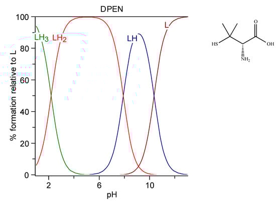 - Kõszegi-Szalai, H.; Paál, T.L. Equilibrium studies of mercury (II) complexes with penicillamine. Talanta 1999, 48, 393–402. [Google Scholar] [CrossRef]