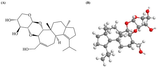 The chemical structure of erinacine C: (A) 2-dimensional structure; (B) 3-dimensional structure.