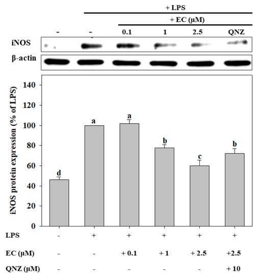 2.3. Effects of EC on LPS-Induced Protein Expression of iNOS