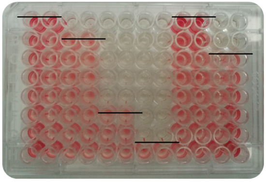 3.4. Determination of the Minimum Inhibitory Concentration (MIC) by Microdilution in a 96-Well Plate