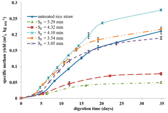 - If the conditions of the steam explosion are too mild, the methane yield remains constant compared to untreated rice straw.
