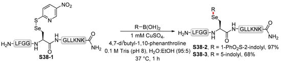 - Cohen, D.T.; Zhang, C.; Pentelute, B.L.; Buchwald, S.L. An Umpolung Approach for the Chemoselective Arylation of Selenocysteine in Unprotected Peptides. J. Am. Chem. Soc. 2015, 137, 9784–9787. [Google Scholar] [CrossRef]