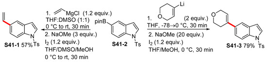 The traditional approach to indolylboronic acids is based on the halide-to-lithium exchange reaction by means of nBuLi. Selected examples reported by Liu [44] show the synthesis of 3-indolylboronic acid via the reaction of 3-bromoinodole S3-1 with nBuLi followed by the addition of triisopropyl borate. The boronic acid S3-2 that was formed in this way was used in the subsequent Suzuki-Miyaura reaction, affording the indole S3-3 with an overall isolated yield of 45% (Scheme 3).