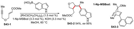 - Fei, X.; Li, C.; Yu, X.; Liu, H. Rh(III)-Catalyzed Hydroarylation of Alkyne MIDA Boronates via C–H Activation of Indole Derivatives. J. Org. Chem. 2019, 84, 6840–6850. [Google Scholar] [CrossRef]