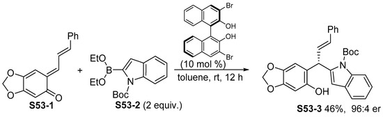 - Luan, Y.; Schaus, S.E. Enantioselective Addition of Boronates to o-Quinone Methides Catalyzed by Chiral Biphenols. J. Am. Chem. Soc. 2012, 134, 19965–19968. [Google Scholar] [CrossRef] [PubMed]