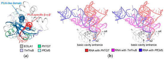2.2. Structural Analyses Imply That RNA-Binding Mode of EOLA1 is Different from That of Pseudouridine Synthase and Archaeosine Transglycosylase (PUA) Domains