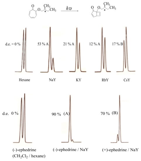- Joy, A.; Scheffer, J.R.; Corbin, D.R.; Ramamurthy, V. Enantioselective photoelectrocyclization within zeolites: Tropolone methyl ether in chirally modified NaY. Chem. Commun. 1998, 13, 1379–1380. [Google Scholar] [CrossRef]