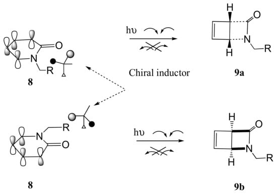 - Grosch, B.; Bach, T. Chiral Photochemistry. In Chiral Photochemistry; Inoue, Y., Ramamurthy, V., Eds.; Marcel Dekker: New York, NY, USA, 2004; pp. 315–340. [Google Scholar]