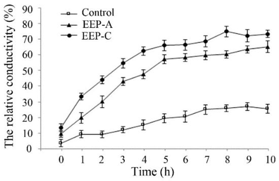 As shown in Figure 4, compared with the control, EEP treatment increased the extracellular conductivity, indicating that EEP could damage the cell membrane.