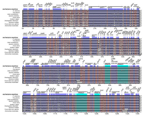 Plastid genomes of Deschampsia cespitosa and D. antarctica (from [5]).