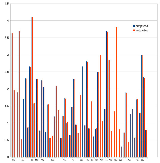 Normalized codon usage of Deschampsia cespitosa and D. antarctica.