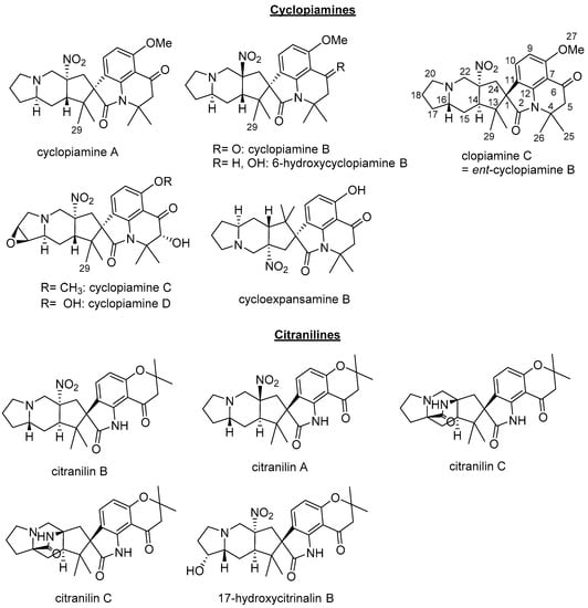 Structures of Cyclopiamines and Citranilines.
