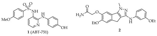 N-(2-((4-Hydroxyphenyl)amino)pyridin-3-yl)-4-methoxybenzenesulfonamide (ABT-751, 1, Figure 1) is an orally available sulfonamide tubulin inhibitor under clinical investigations for the treatment of cancers [,]. On its X-ray crystal structures with tubulin, ABT-751 interacted with all the three pockets of tubulin at the colchicine binding site []. Based on the binding mode of 1 with tubulin and the pyrazole pharmacophore, our group designed and synthesized a series of indenopyrazoles as potential tubulin polymerization inhibitors targeting the colchicine binding site []. The indenopyrazole analogue 2 (Figure 1) was found to compete with colchicine in binding to the tubulin colchicine site and inhibit the polymerization of tubulin. In vitro, 2 displayed nanomolar potency against a variety of tumor cell lines, arrested tumor cells in G2/M phase through the regulation of cell cycle-related proteins, and induced tumor cell apoptosis through the activation of caspase pathways. Furthermore, 2 was effective for multidrug resistance tumor cells and inhibited phosphatase and tensin homolog (PTEN) phosphorylation and PTEN/Akt/NF-кB signaling []. In vivo, 2 demonstrated its potency in non-small cell lung cancer (NSCLC) and vincristine-resistance human oral epidermoid carcinoma cell (KB/V) xenograft models without obvious side effects [,]. In this study, we replaced the indenopyrazole core with the 1H-benzofuro[3,2-c]pyrazole framework and designed a series of the 1H-benzofuro[3,2-c]pyrazole derivatives 4a–e. In the preparation of 4a–e, the partial cleavage of the furan ring was observed and a series of 5-methoxy-2-(3-(phenylamino)-1H-pyrazol-5-yl)phenol derivatives 5a–e were isolated. We reported here the synthesis and preliminary results of their tumor cell growth inhibitory activity as well as the identification of pyrazole 5b as a novel tubulin polymerization inhibitor.