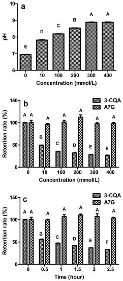 2.2. Retention Rate of 3-CQA and A7G under Basic Conditions