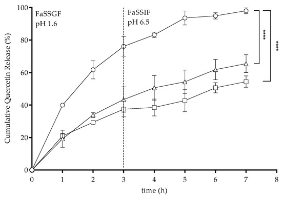 - Vijayakumar, A.; Baskaran, R.; Jang, Y.S.; Oh, S.H.; Yoo, B.K. Quercetin-Loaded Solid Lipid Nanoparticle Dispersion with Improved Physicochemical Properties and Cellular Uptake. AAPS PharmSciTech 2017, 18, 875–883. [Google Scholar] [CrossRef]