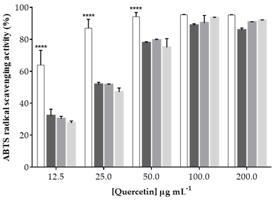 - Manca, M.L.; Castangia, I.; Caddeo, C.; Pando, D.; Escribano, E.; Valenti, D.; Lampis, S.; Zaru, M.; Fadda, A.M.; Manconi, M. Improvement of quercetin protective effect against oxidative stress skin damages by incorporation in nanovesicles. Colloids Surf. B Biointerfaces 2014, 123, 566–574. [Google Scholar] [CrossRef]