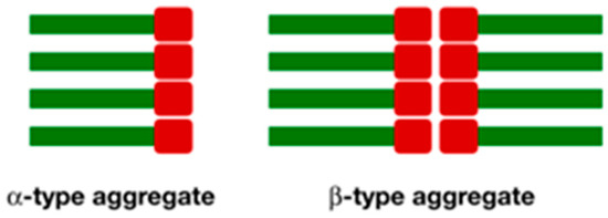 Cartoon representing the spatial disposition of monomers in α- and β-aggregates.