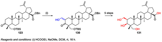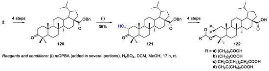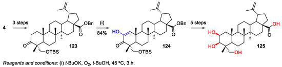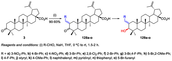 HBA 4 was also used to perform esterification reactions [18,50,51]. Zhang et al. prepared C-28 ester derivatives of HBA bearing different substituents 79 by the treatment of 3-oxo-HBA 78a with appropriate halides under basic conditions (Scheme 13) [18].