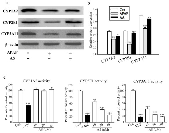 2.7. Effects of AS on the Expressions and Activities of CYPs
