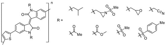 - Stalder, R.; Mei, J.; Graham, K.R.; Estrada, L.A.; Reynolds, J.R. Isoindigo, a Versatile Electron-Deficient Unit For High-Performance Organic Electronics. Chem. Mater. 2014, 26, 664–678. [Google Scholar] [CrossRef]