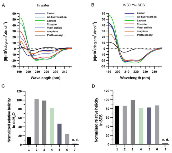- de Araujo, A.D.; Hoang, H.N.; Kok, W.M.; Diness, F.; Gupta, P.; Hill, T.A.; Driver, R.W.; Price, D.A.; Liras, S.; Fairlie, D.P. Comparative α-Helicity of Cyclic Pentapeptides in Water. Angew. Chem. Int. Ed. 2014, 53, 6965–6969. [Google Scholar] [CrossRef] [PubMed]
