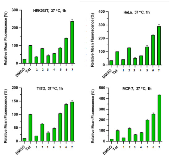 - Rezgui, R.; Blumer, K.; Yeoh-Tan, G.; Trexler, A.J.; Magzoub, M. Precise Quantification of Cellular Uptake of Cell-penetrating Peptides Using Fluorescence-activated Cell Sorting and Fluorescence Correlation Spectroscopy. Biochim. Biophys. Acta 2016, 1858, 1499–1506. [Google Scholar] [CrossRef] [PubMed]
