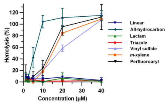 - Sakagami, K.; Masuda, T.; Kawano, K.; Futaki, S. Importance of Net Hydrophobicity in the Cellular Uptake of All-Hydrocarbon Stapled Peptides. Mol. Pharm. 2018, 15, 1332–1340. [Google Scholar] [CrossRef]