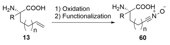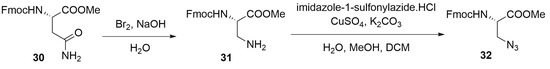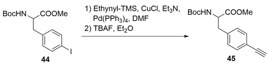 - Johansson, H.; Pedersen, D.S. Azide- and Alkyne-Derivatised α-Amino Acids. Eur. J. Org. Chem. 2012, 2012, 4267–4281. [Google Scholar] [CrossRef]