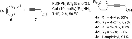 3.2. General Procedure for the Synthesis of Propargyl Alcohols 4a–e