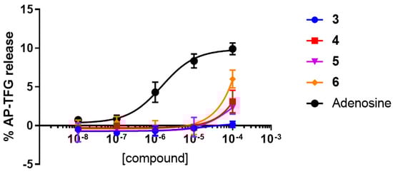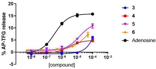 TGFα shedding assay results at the human A2AAR for compounds 3–6.