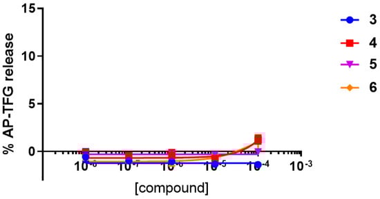TGFα shedding assay results at the vector-transfected HEK293 cells for compounds 3–6.