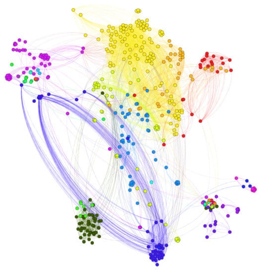 - Milo, R.; Shen-Orr, S.; Itzkovitz, S.; Kashtan, N.; Chklovskii, D.; Alon, U. Network motifs: Simple building blocks of complex networks. Science 2002, 298, 824–827. [Google Scholar] [CrossRef] [PubMed]