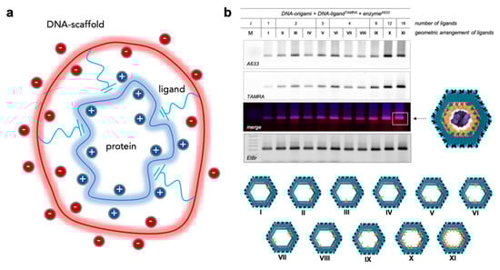 - Sprengel, A. Tailored protein encapsulation into a DNA host using geometrically organized supramolecular interactions. Nat. Commun. 2017, 8, 14472. [Google Scholar] [CrossRef]