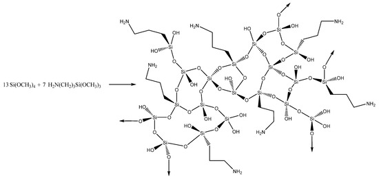 - Hüsing, N.; Schubert, U.; Mezei, R.; Fratzl, P.; Riegel, B.; Kiefer, W.; Kohler, D.; Mader, W. Formation and Structure of Gel Networks from Si(OEt)4/(MeO)3Si(CH2)3NR‘2 Mixtures (NR‘2 = NH2 or NHCH2CH2NH2). Chem. Mater. 1999, 11, 451–457. [Google Scholar] [CrossRef]
