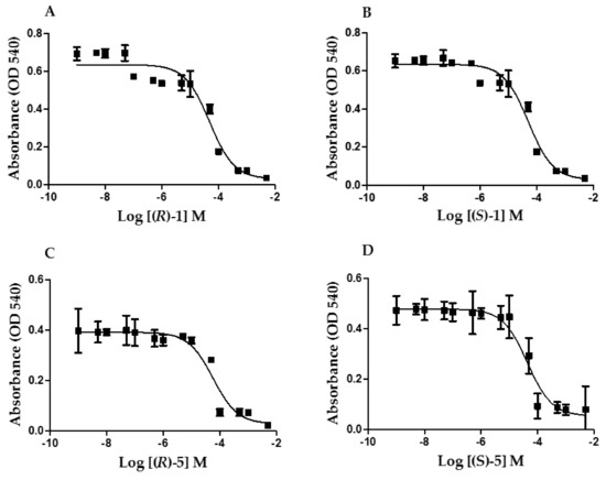 2.2.1. Preliminary Biological Activity of (R)-2, 3, (S)-4, and (S)-5