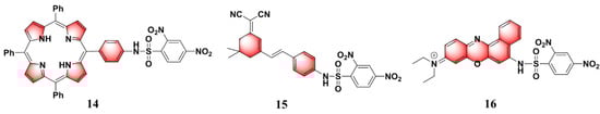 Other near-infrared (NIR) fluorescent PhSH probes (14–16) based on the recognition unit of 2,4-dinitrobenzenesulfonic amide.