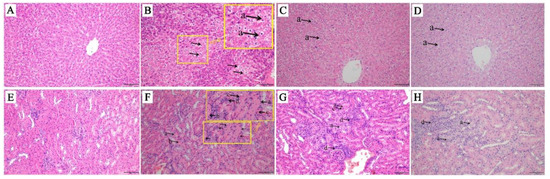 Liver and kidney tissues were fixed by 4% paraformaldehyde solution, dehydrated, embedded in paraffin, prepared at 4 μm thickness, and stained with hematoxylin and eosin (H&E), then observed and described in a panoramic scanner for histopathological examination.