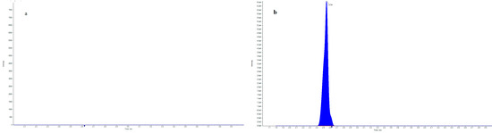 Example chromatograms of (a) blank liver sample and (b) liver containing strychnine residues at a concentration of 150 µg/kg.