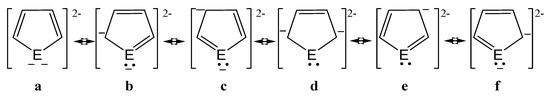 - Saito, M.; Yoshioka, M. The anions and dianions of group 14 metalloles. Co-ord. Chem. Rev. 2005, 249, 765–780. [Google Scholar] [CrossRef]