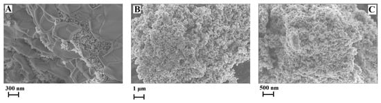 Field-emission scanning electron microscopic (FE-SEM) images of the CuS prepared in different systems. (A) [C4C2OOHim]NTf2/Na2S, (B) [C4C2OOHim]NTf2/TAA (80 °C, 4 h) and (C) [C4C2OOHim]NTf2/TAA (80 °C, 6 h).