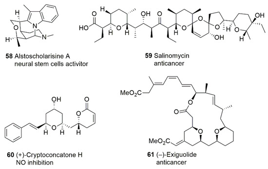 - Vetica, F.; Chauhan, P.; Dochain, S.; Enders, D. Asymmetric organocatalytic methods for the synthesis of tetrahydropyrans and their application in total synthesis. Chem. Soc. Rev. 2017, 46, 1661–1674. [Google Scholar] [CrossRef]
