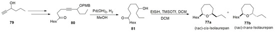 A large number of valuable and high-quality contributions have been made in the construction of THP rings [104,114]. The Prins cyclisation reaction and its variants are extremely powerful methods for constructing THF [115]/THP [116] rings and widely applied in total synthesis [117,118,119].