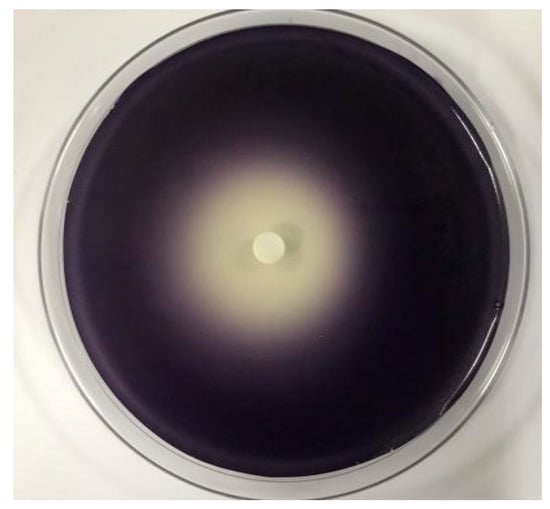 Quorum-sensing inhibition (QSI) assay was performed according to the procedure described by Zhang et al. [] with a few modifications. An overnight culture of CV026 (1%) was spread on LB plates (20 mL), and then C6-HSL solution (2 µL, 50 mg/mL) was added to the plates. The filter paper (6 mm in diameter) was then placed into the center of the plate. Next, the C. camphora EO (15 µL) was added to the filter paper, and the plates were incubated for 24 h at 30 °C. QSI was assessed from the formation of a ring of inhibition extent of violacein production around the filter paper.