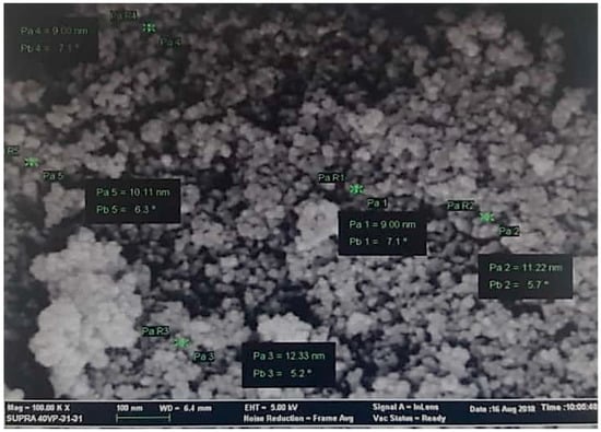 Field emission scanning electron microscopy (FESEM) micrograph of the biosynthesized iron oxide nanoparticles.