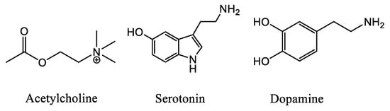 Chemical structure of the neurotransmitters ACh, 5-HT and DA.