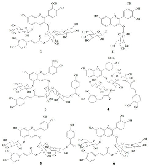 - Giusti, M.M.; Wrolstad, R.E. Acylated anthocyanins from edible sources and their applications in food systems. Biochem. Eng. J. 2003, 14, 217–225. [Google Scholar] [CrossRef]