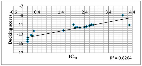Correlation of Predicted Free Binding Energy of the Compounds in the Allosteric Center of the Enzyme with IC50 of the Compounds.