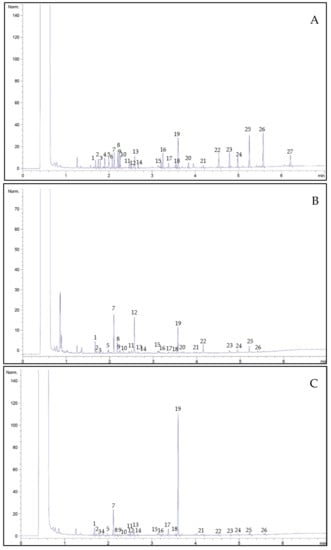 - Javadi, N.; Abas, F.; Hamid, A.A.; Simoh, S.; Shaari, K.; Ismail, I.S.; Mediani, A.; Khatib, A. GC-MS-Based Metabolite Profiling of Cosmos caudatus Leaves Possessing Alpha-Glucosidase Inhibitory Activity. J. Food Sci. 2014, 79, C1130–C1136. [Google Scholar] [CrossRef]